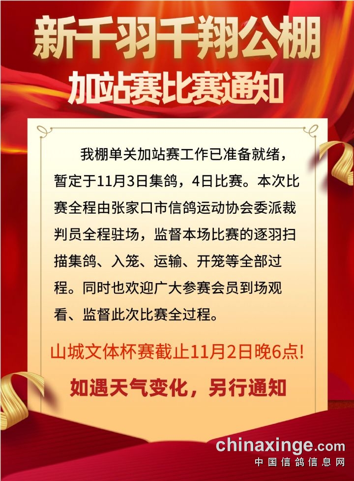 • 新千羽千翔公棚加站赛集鸽图片及证明 (2025-11-3 14:55:35)