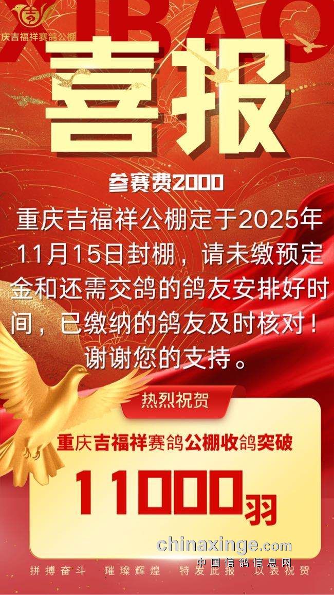 重庆吉福祥赛鸽公棚第五届封棚公告