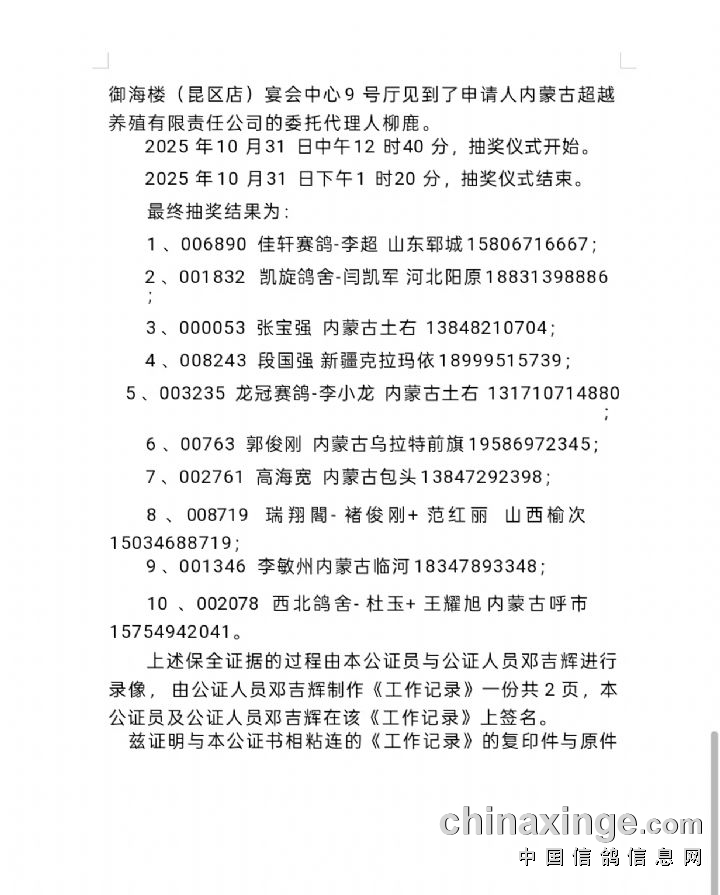 | 内蒙超越公棚预定会员抽奖获奖名单