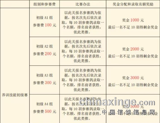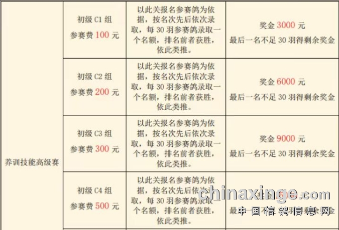 养训技能赛参赛鸽自开笼时间起至当日晚18点为有效报到时间。如司放当日无鸽归巢,则当关养训技能赛结束,退还养训技能赛报名费用;如在有效报到期内获奖名次未报满,则奖金由参加该奖项的获奖鸽均分。