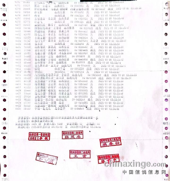 2025年第四届山西泰鑫赛鸽公棚加战赛第一关执行裁判代表签字确认