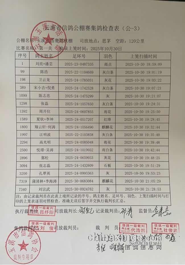 云南玉溪玉活秋棚220公里集鸽上笼清单