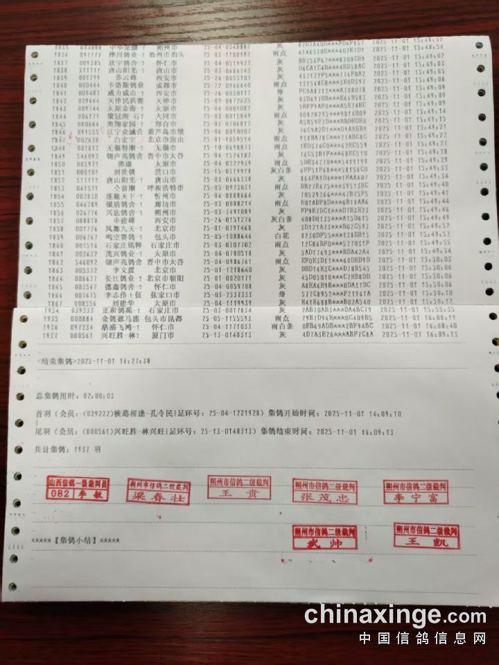 神齐国际赛鸽文化中心(公棚)加站赛集鸽上笼清单(按时间)
