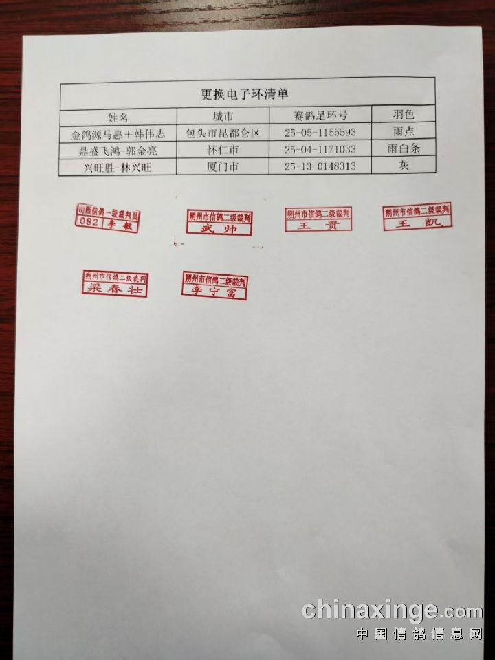 神齐国际赛鸽文化中心(公棚)加站赛更换电子环清单