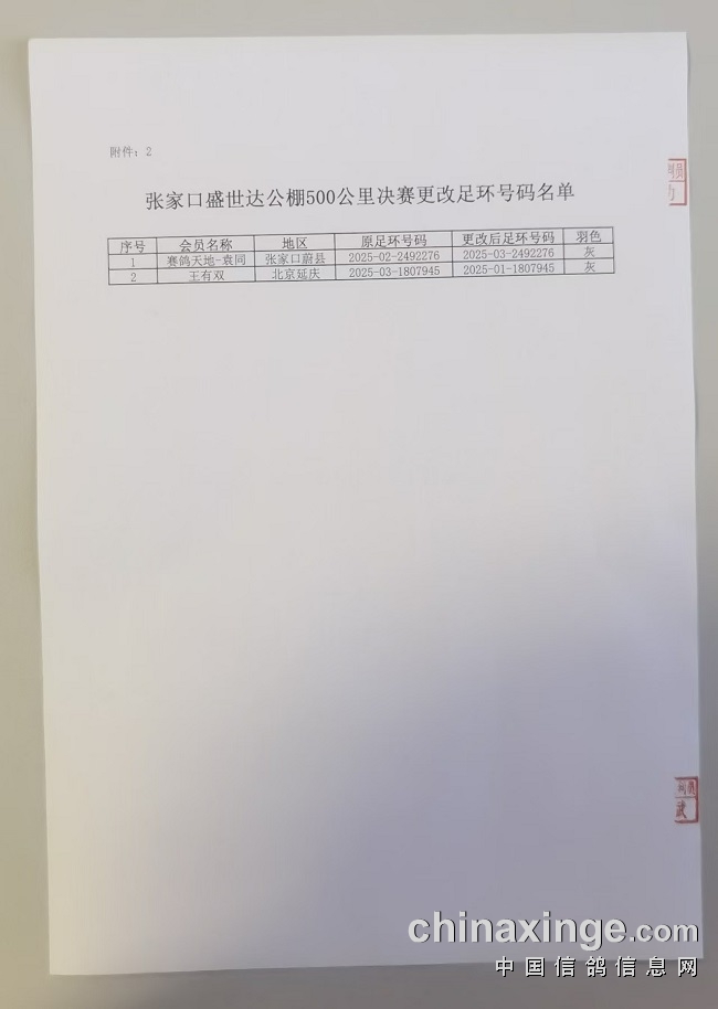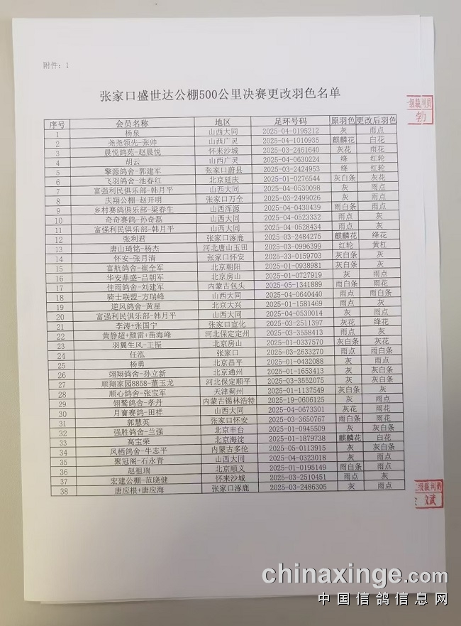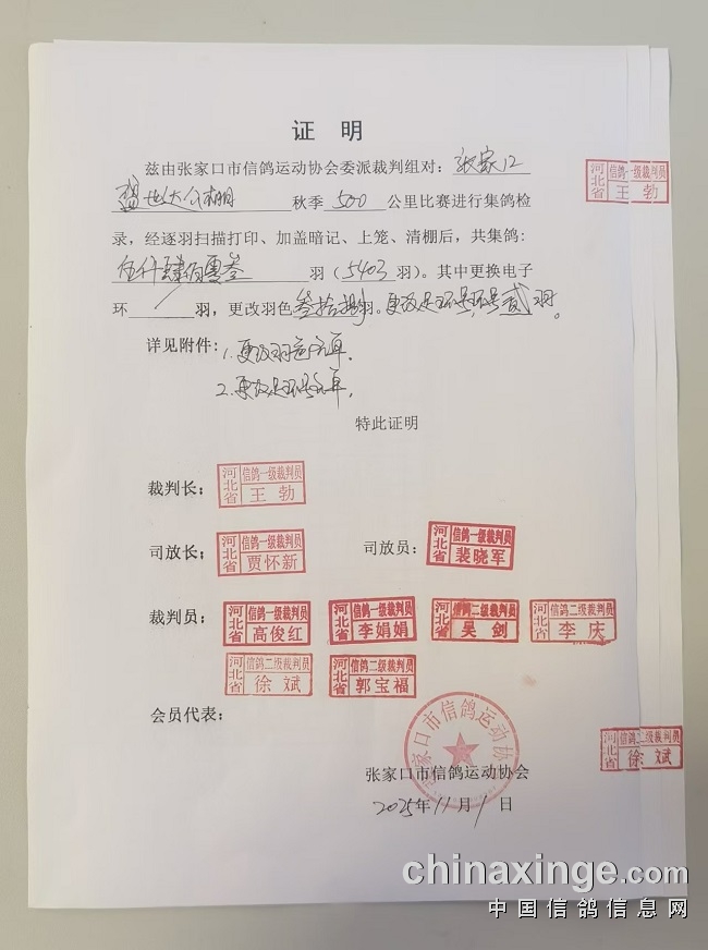 张家口盛世达公棚500公里决赛前900名获奖名单证明