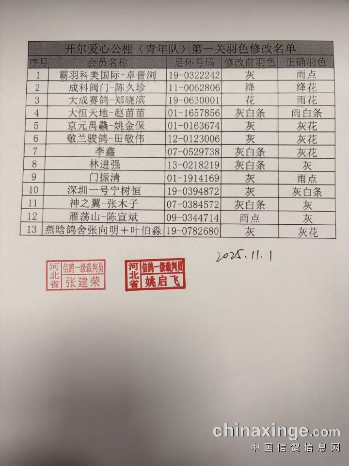 开尔爱心公棚(青年队)第一关更换电子环与修改羽色名单