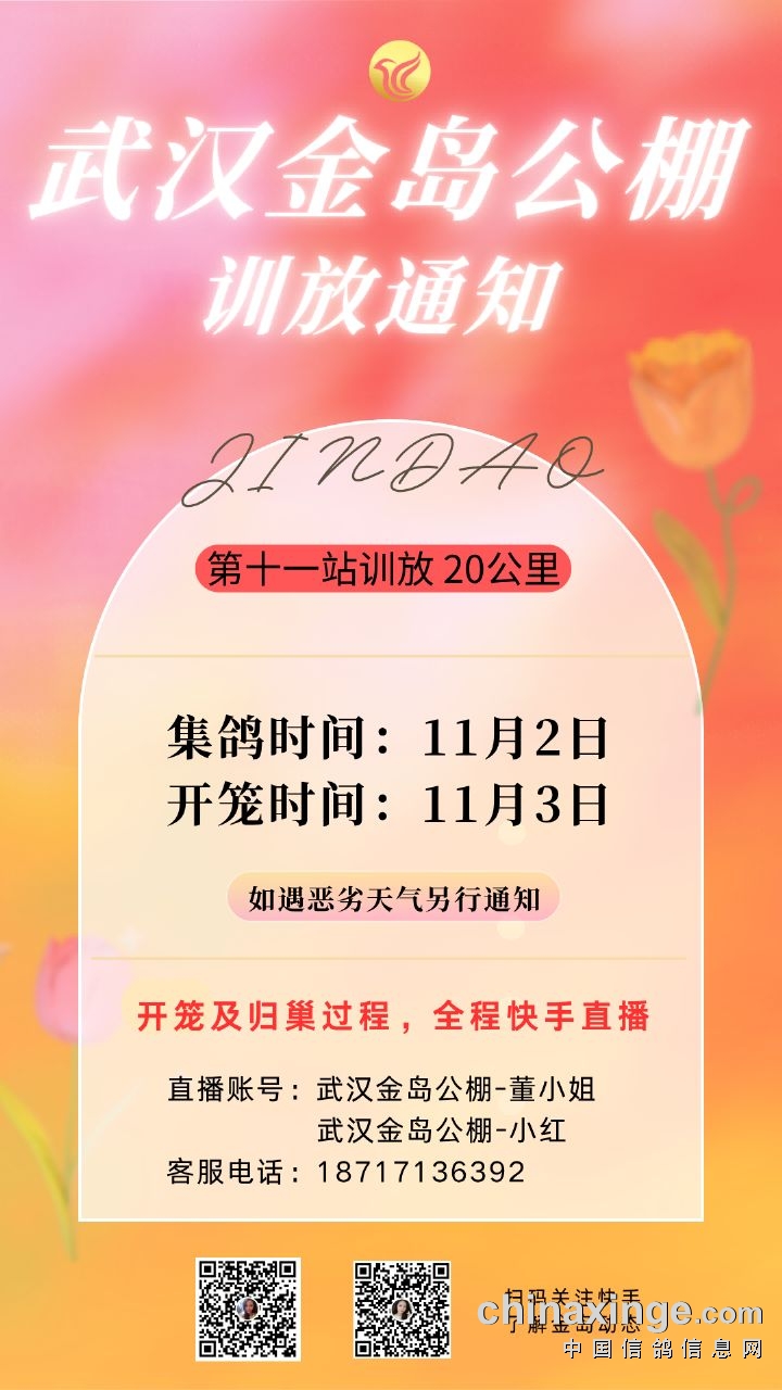 武汉金岛赛鸽公棚第十一站训放扫描数据直播(不排除漏扫)