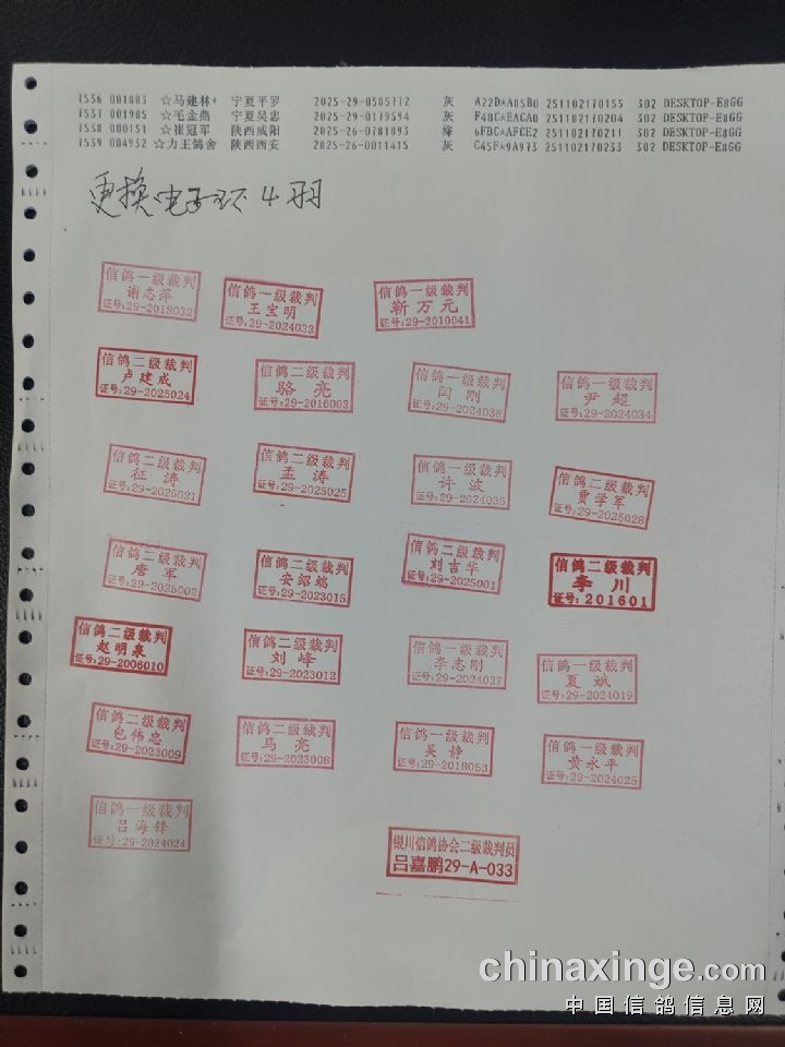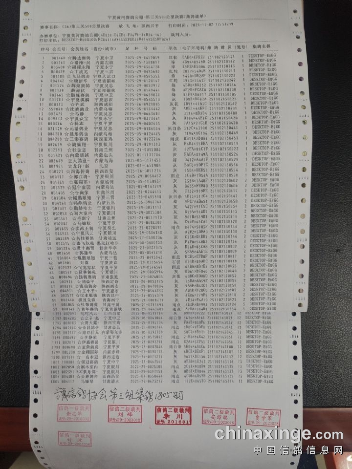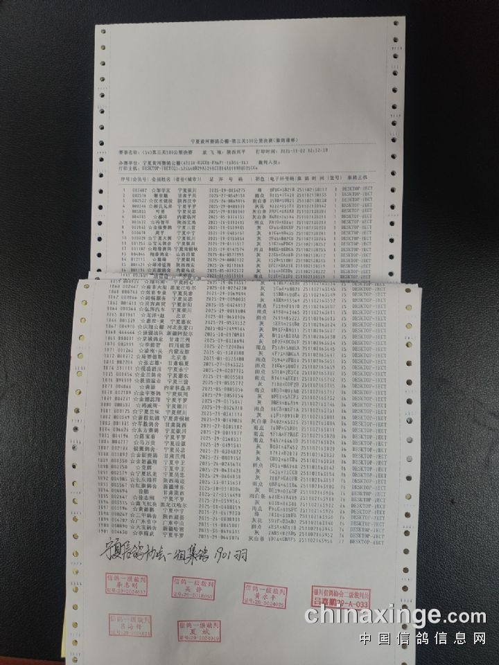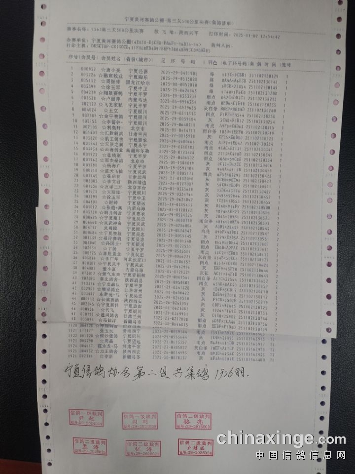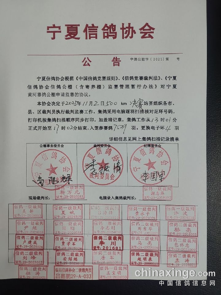 宁夏黄河赛鸽公棚第三关500公里决赛上笼清单