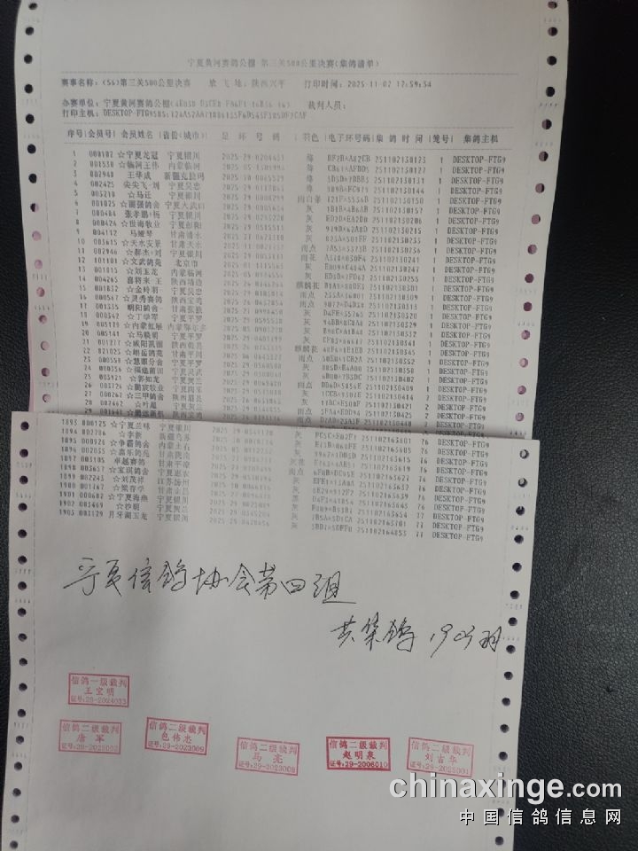 宁夏黄河赛鸽公棚第二关400公里10月26日-11月2日成绩