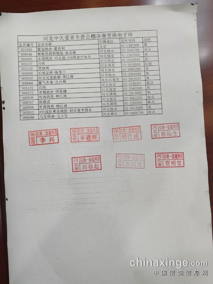 河北中天爱亚卡普公棚决赛加奖验鸽公告