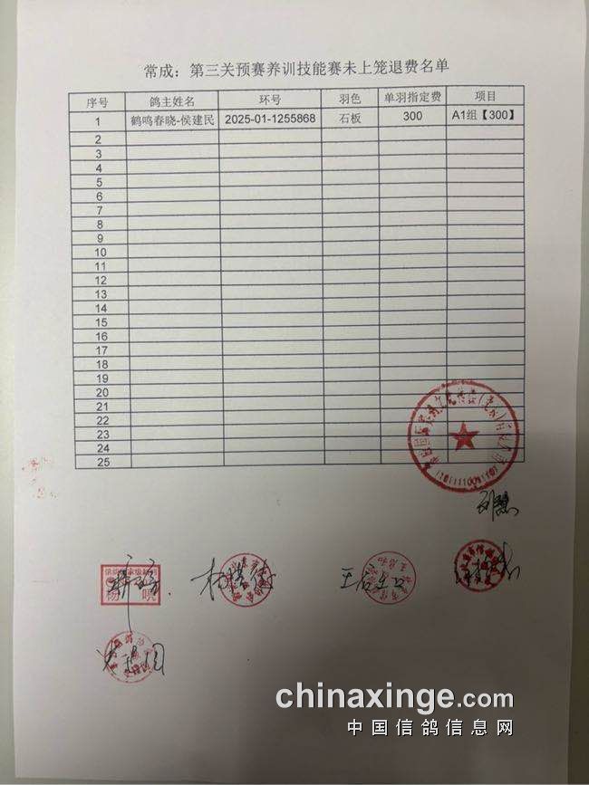 常成:第三关预赛 养训技能赛未上笼退费名单