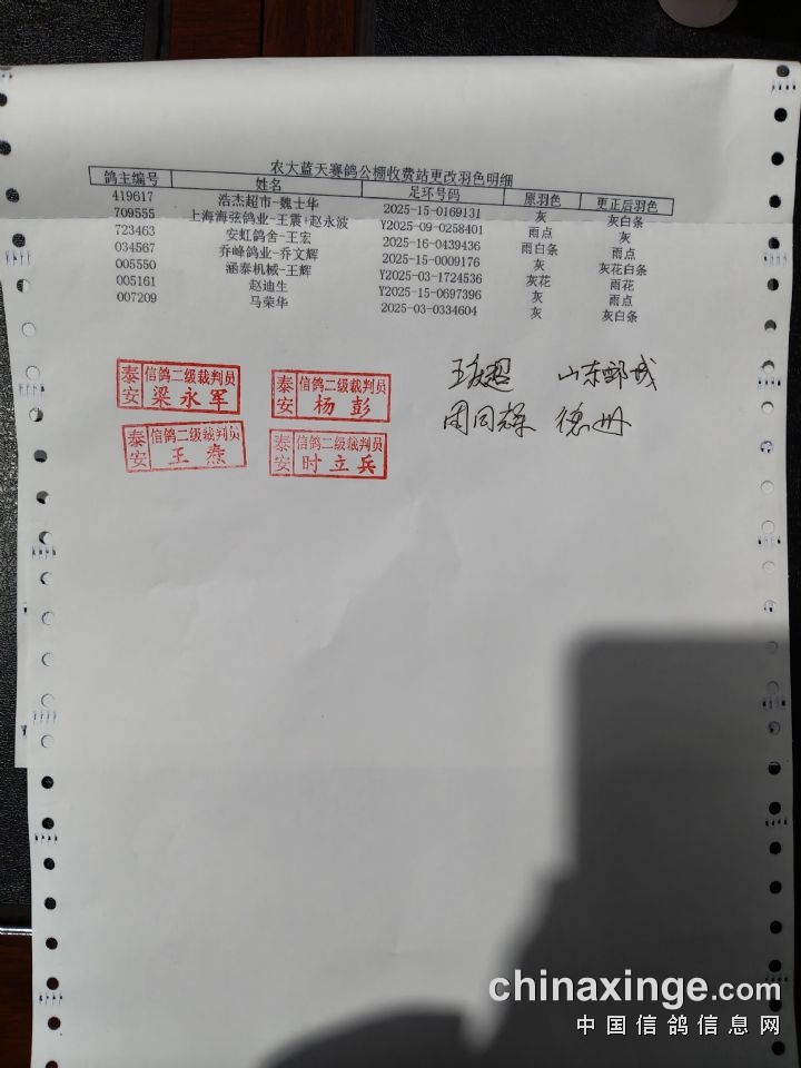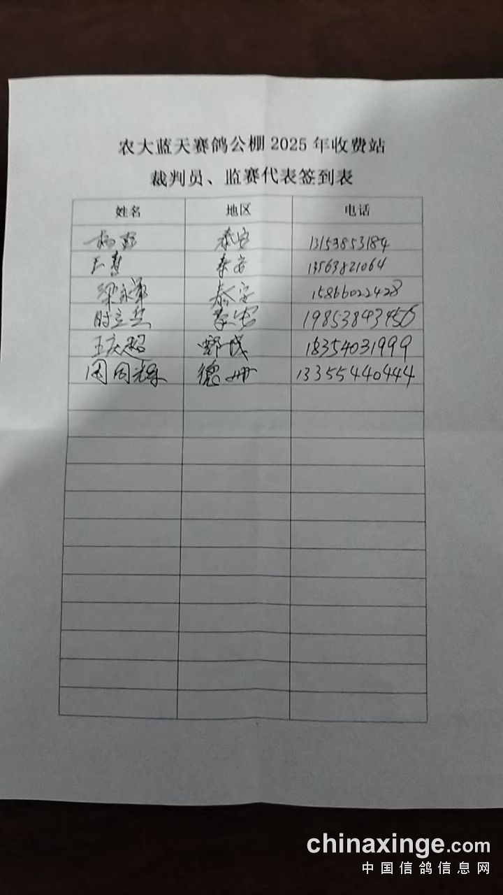 农大蓝天赛鸽公棚收费站集鸽清单(按顺序)