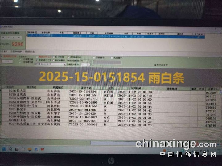 提示:如果此页面是训放清单,要想快速查询鸽环号,请按