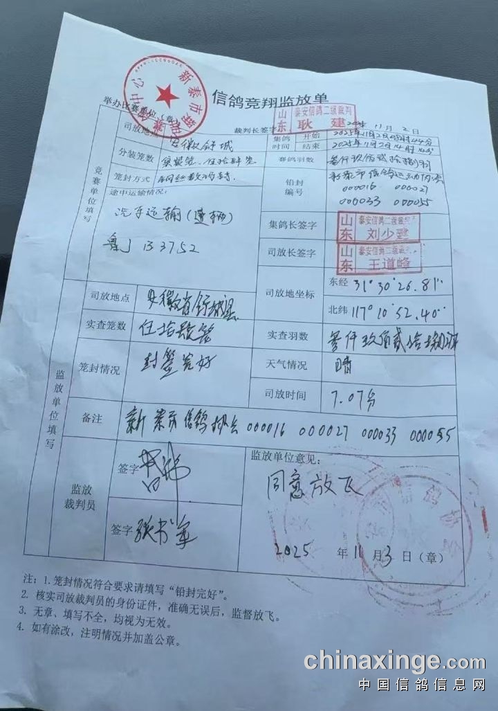 归巢链接:山东翔程赛鸽公棚第三届秋赛决赛归巢链接