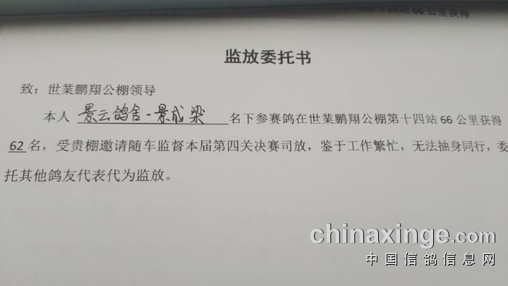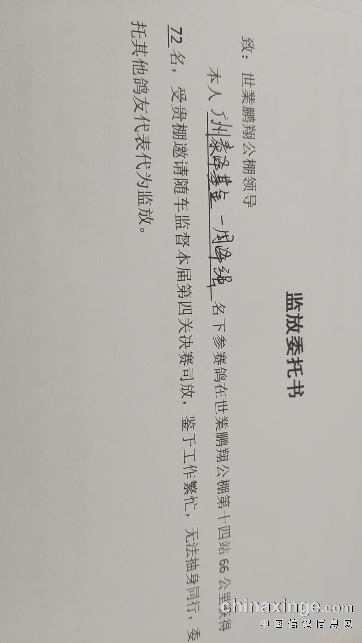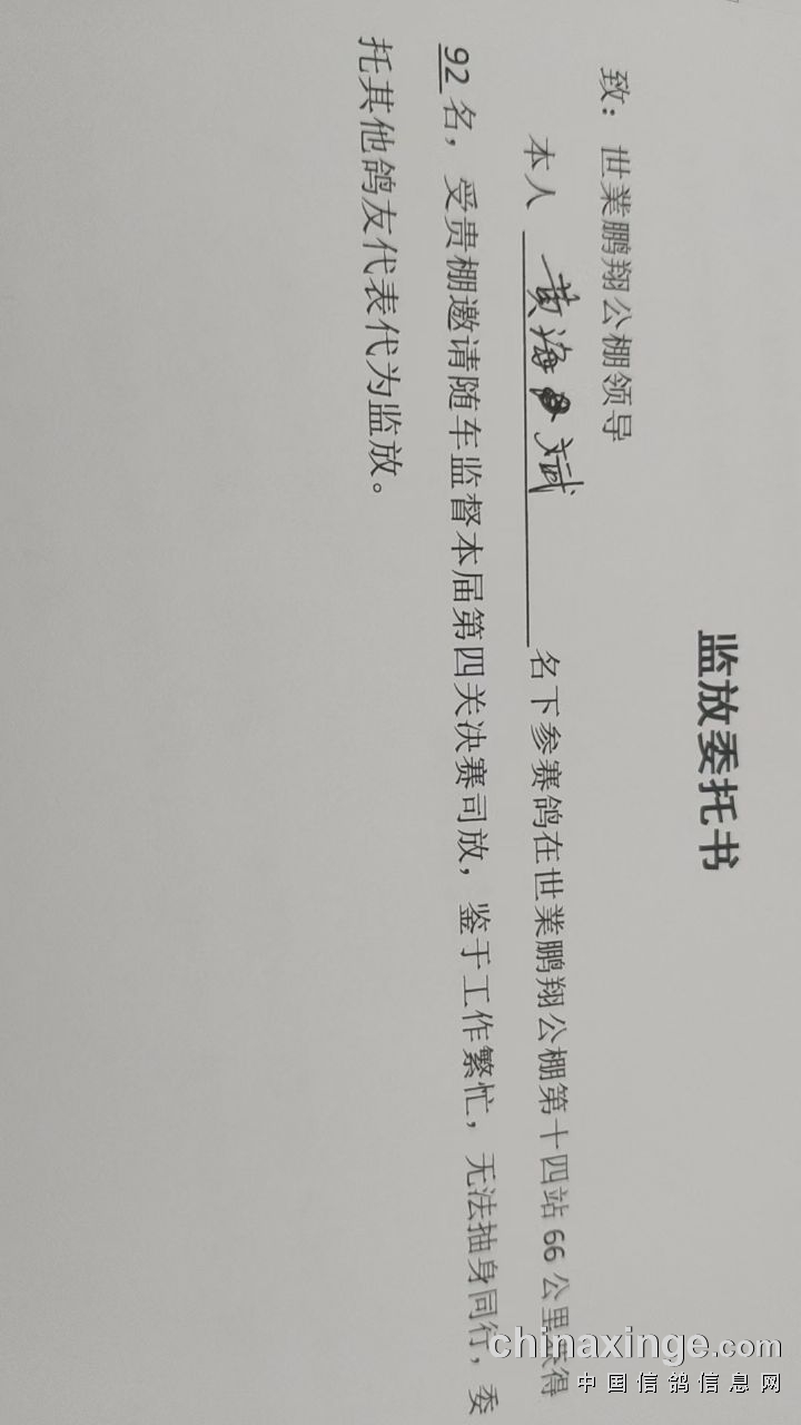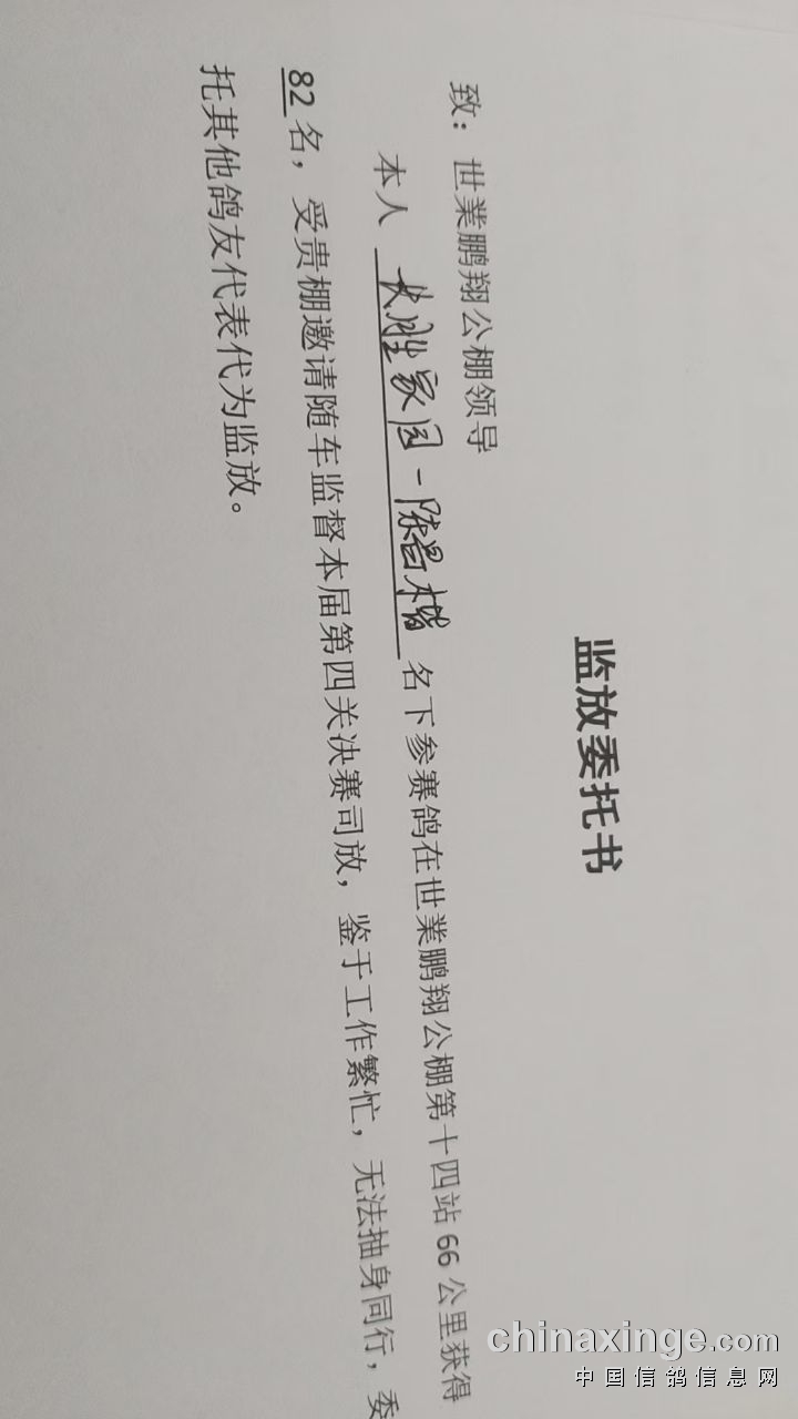 第2、12、22、32、42、52、62、72、82、92名的鸽友由于个人原因无法参与本次热身赛的监放!