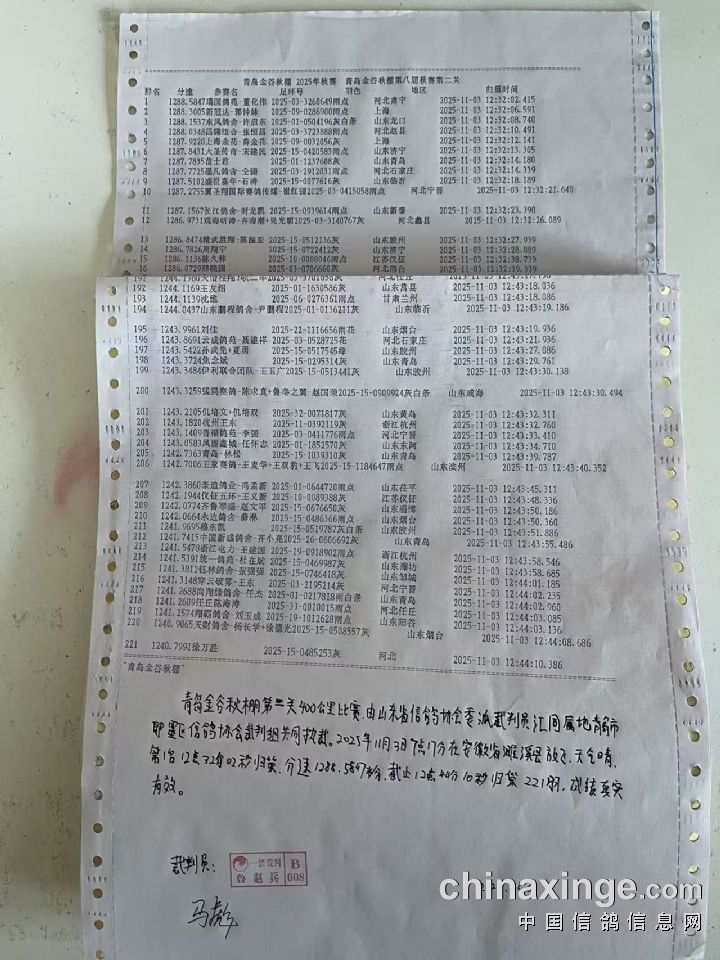 青岛金谷秋棚 第八届秋赛第二关开笼公告及扫描直播