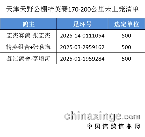 天津天野公棚热身赛170-200公里手扫集鸽上笼数据
