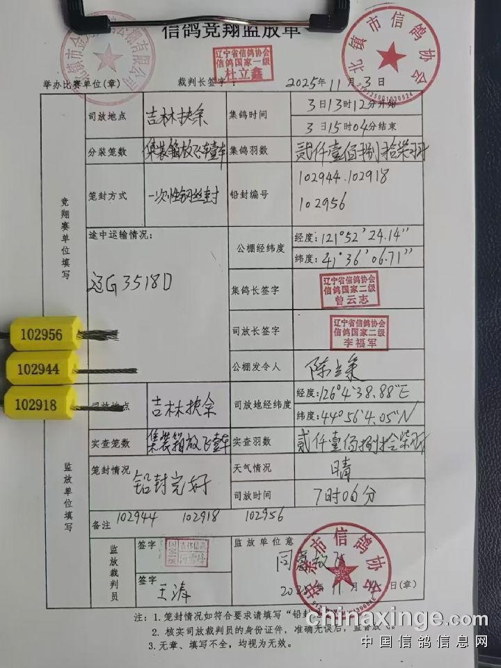 北镇金龙公棚500公里加站赛开笼信息及成绩直播链接