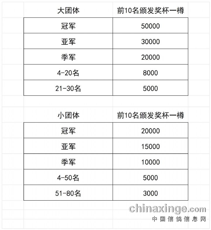 大团体赛每组12羽,凡交鸽时交够12羽即为大团体,多交可分ABC.......组。