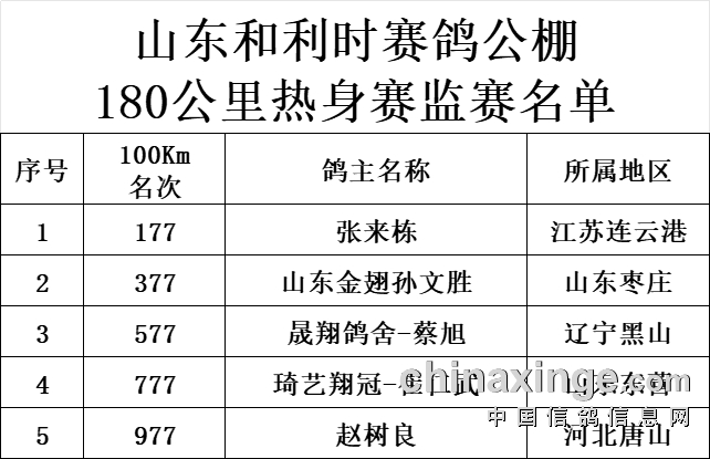 山东和利时赛鸽公棚180公里热身赛定于11月8日集鸽,11月9日晨在山东省临沂市沂水县开笼。届时将由监赛单位东营市信鸽运动协会委派裁判员竞赛执裁,及100公里训放所产生的5名监赛鸽友全程监督集鸽、检录、运输与放飞归巢全过程。180公里热身赛集鸽及训放全程快手直播(快手搜索:山东和利时赛鸽公棚),同时邀请热心鸽友前来观摩监督!具体时间安排如下: