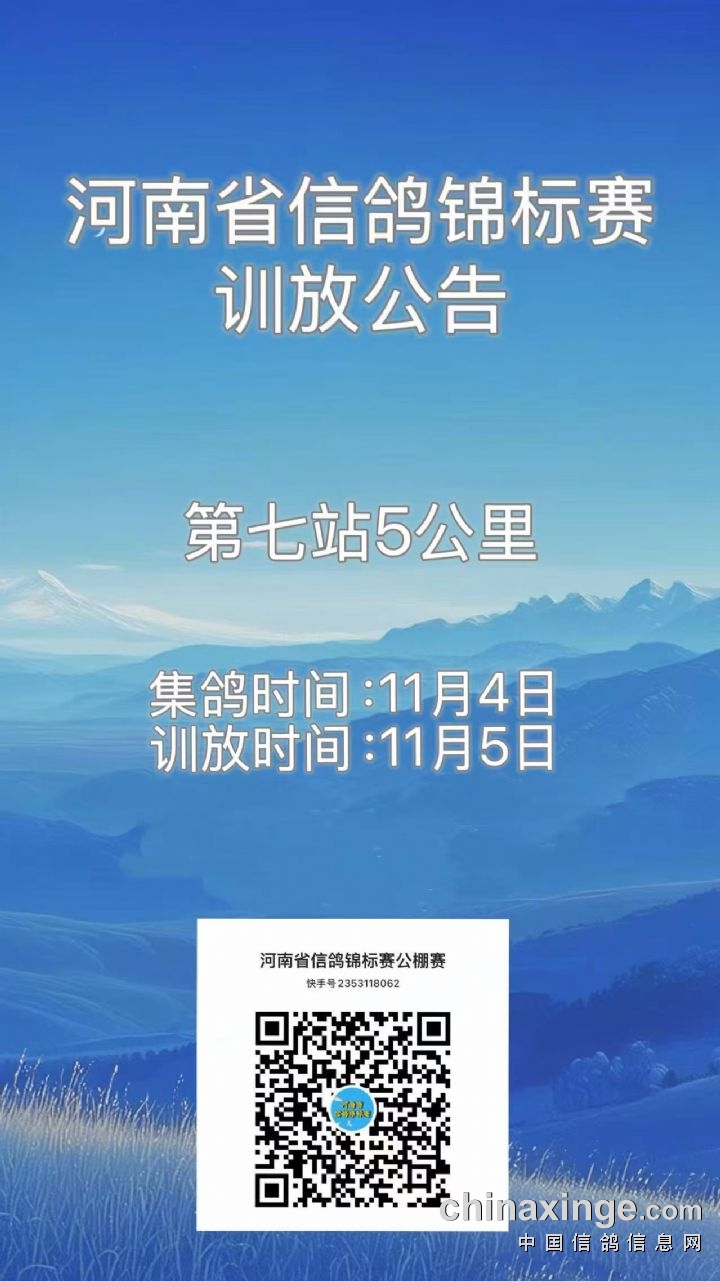 河南省信鸽锦标赛第七站5公里训放公告