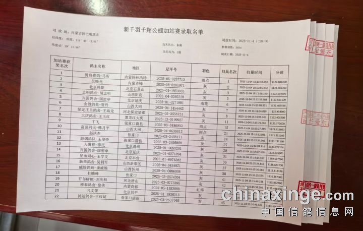 新千羽千翔公棚加站赛开笼图片及数据直播