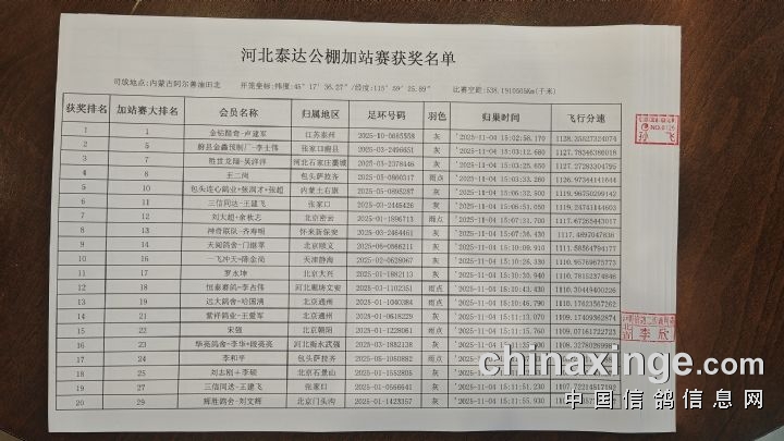 河北泰达公棚加站赛“山城文体杯赛”获奖名单