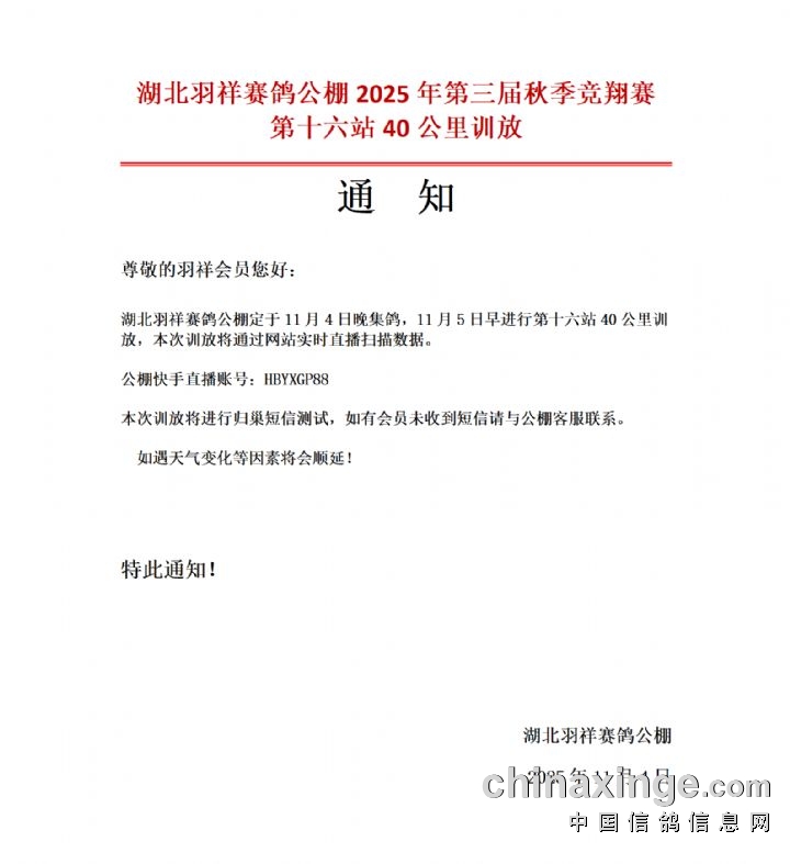 湖北羽祥公棚第十六站40公里训放扫描(不排除漏扫)