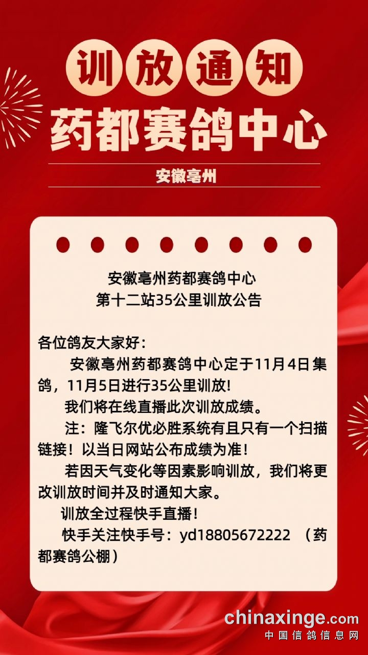 安徽亳州药都赛鸽中心10月30日第八站20公里训放公告