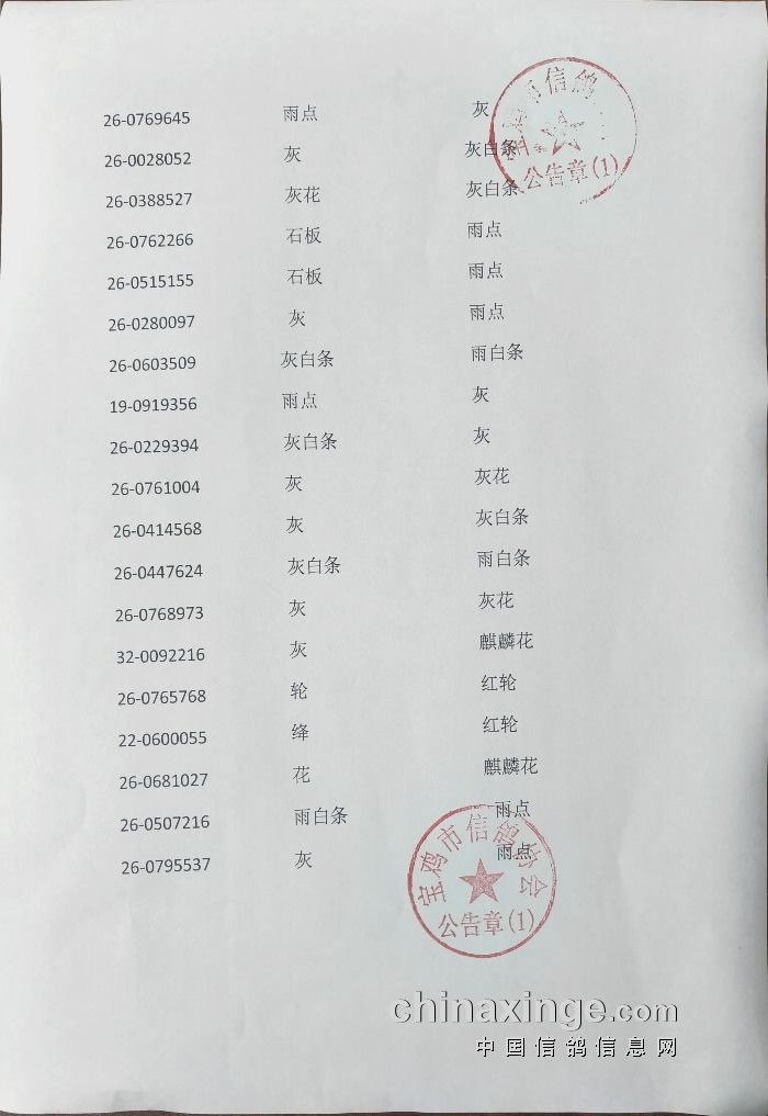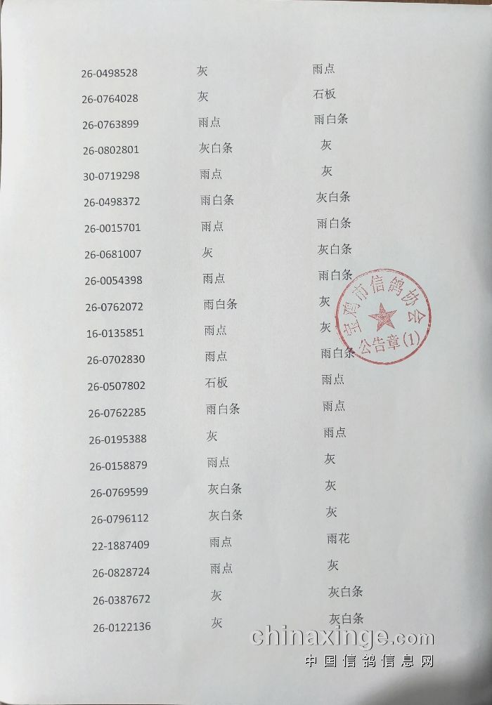 提示:如果此页面是训放清单,要想快速查询鸽环号,请按
