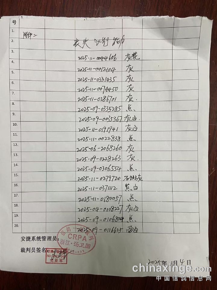 浙江盛世赛鸽公棚收费站更改足环号码清单