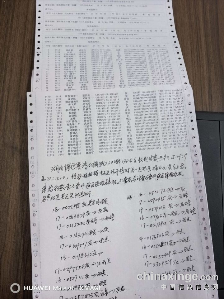 湖北博达公棚(秋棚)130公里收费站集鸽上笼清单
