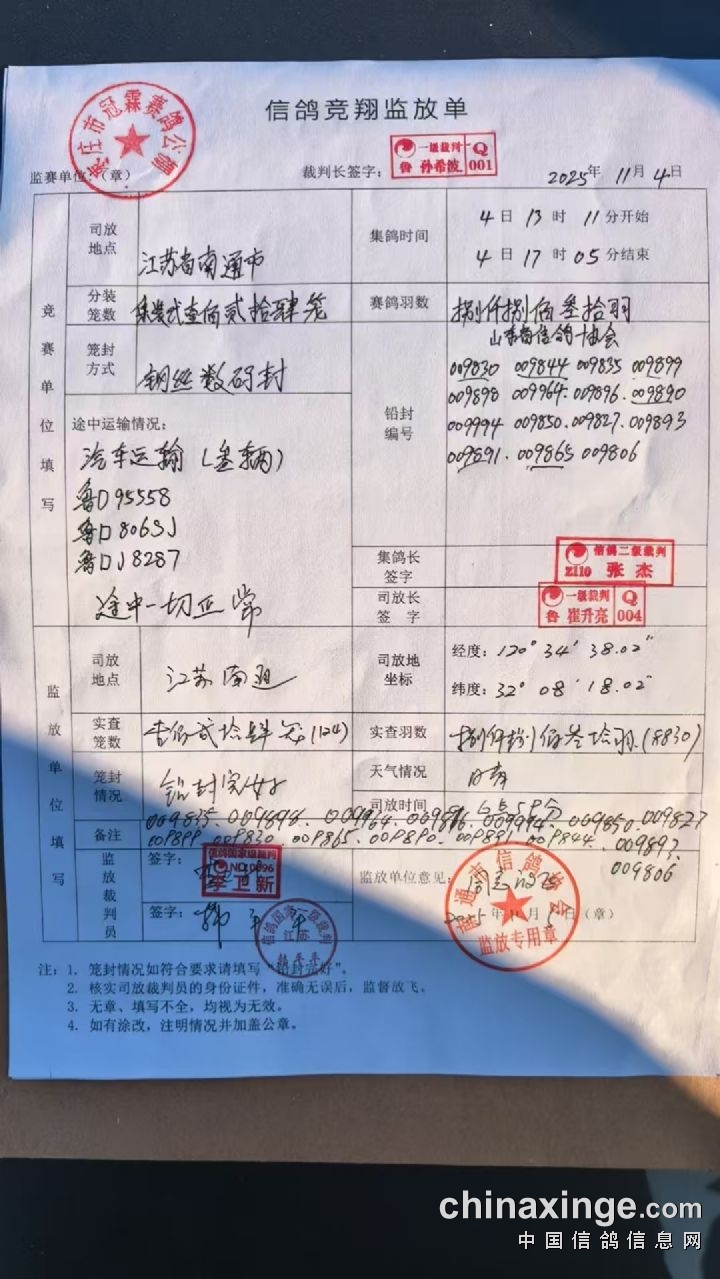 山东冠霖赛鸽公棚400公里更换电子环清单