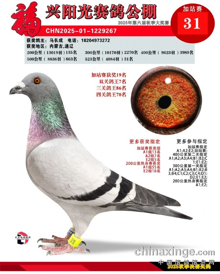 辽宁福兴阳光公棚加站赛冠军-30名获奖鸽照片