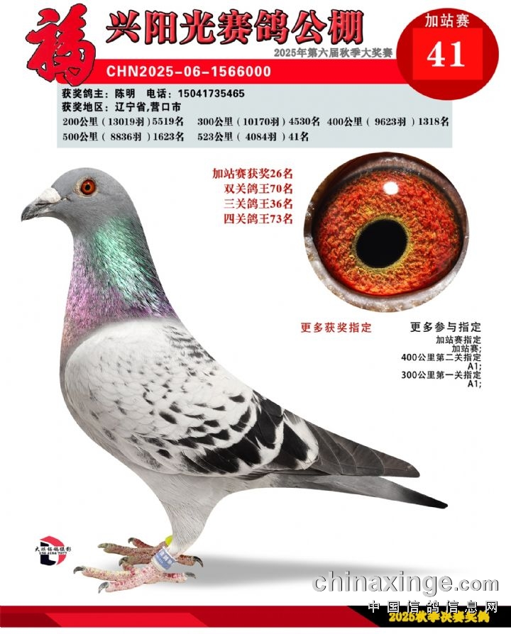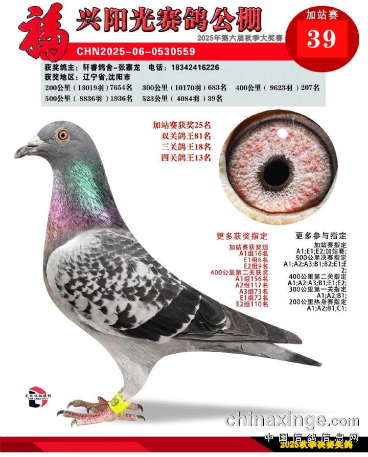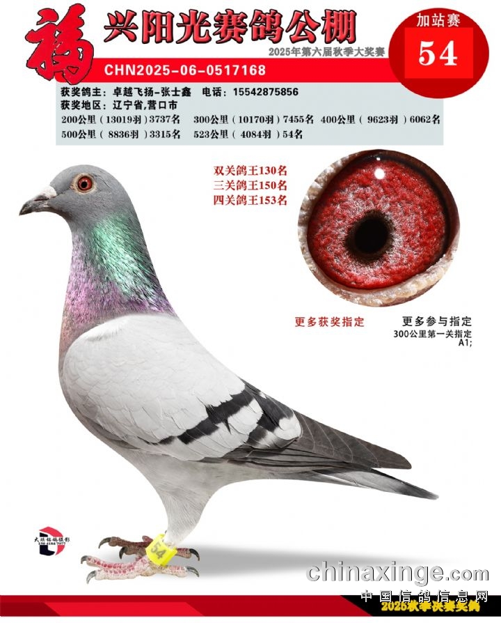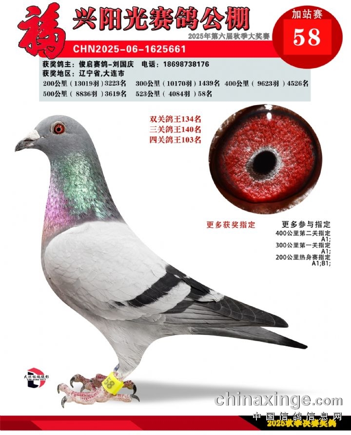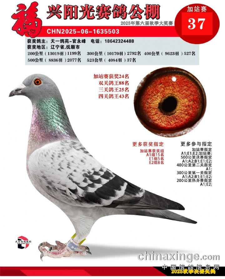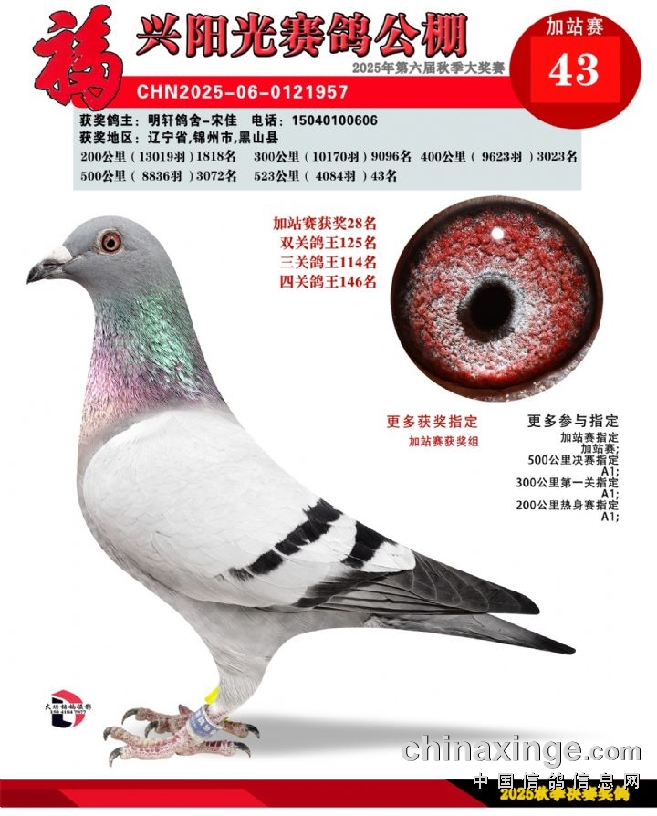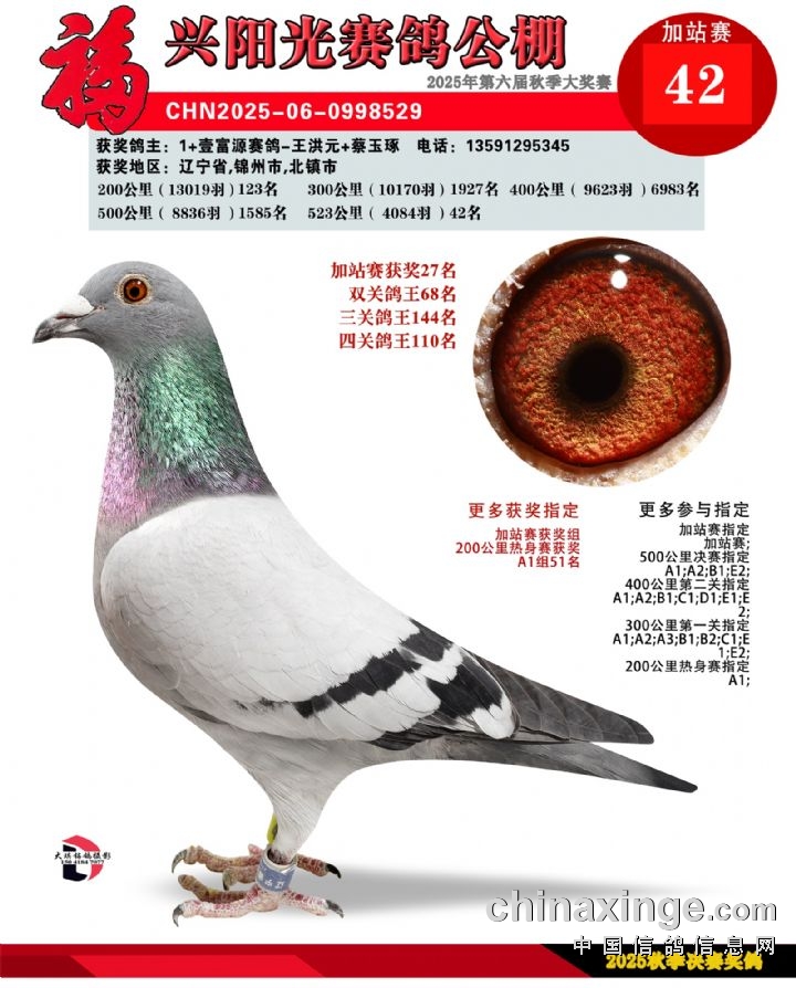 辽宁福兴阳光公棚加站赛91名-135名获奖鸽照片