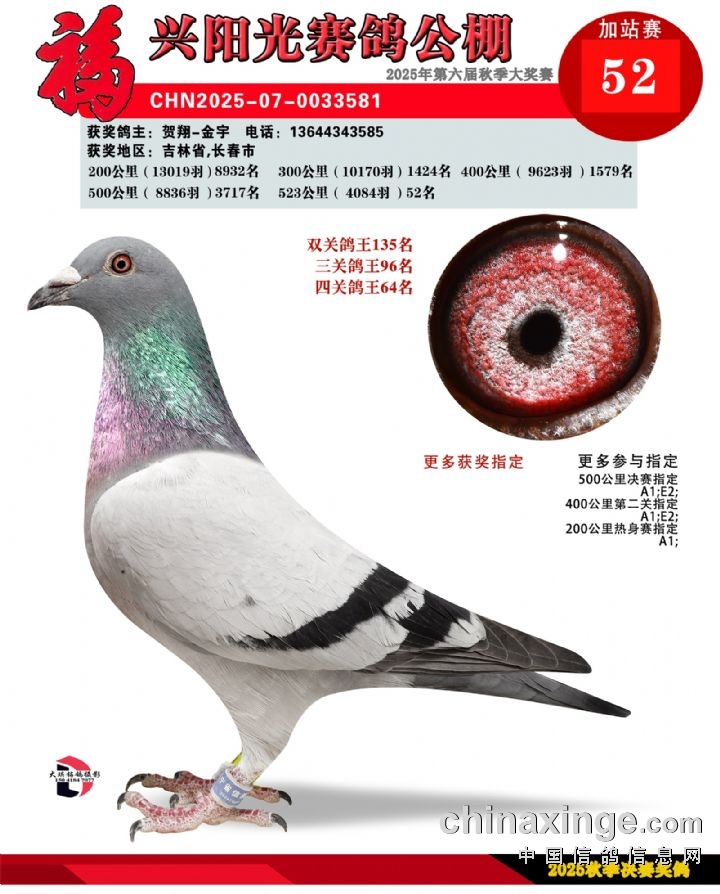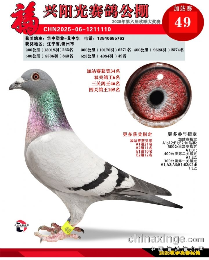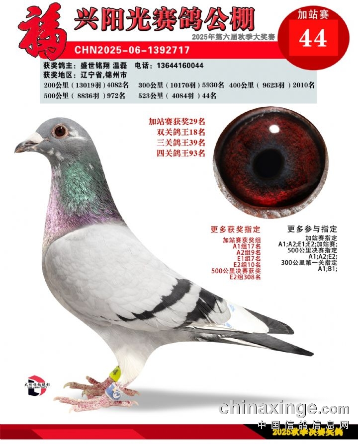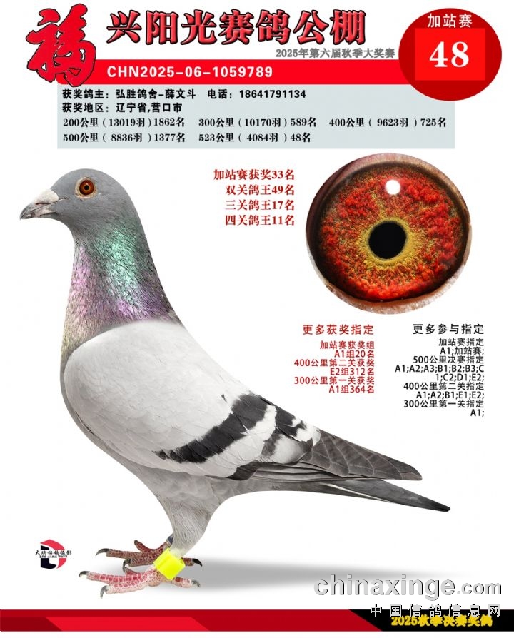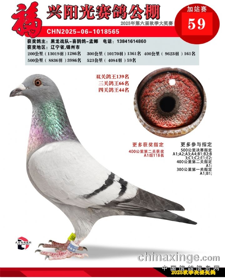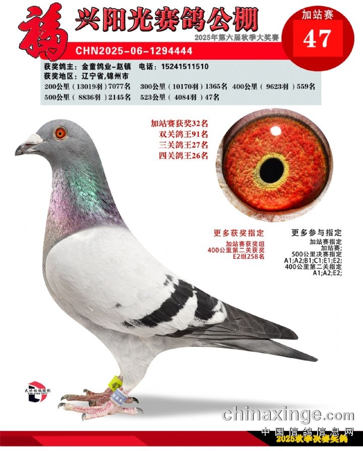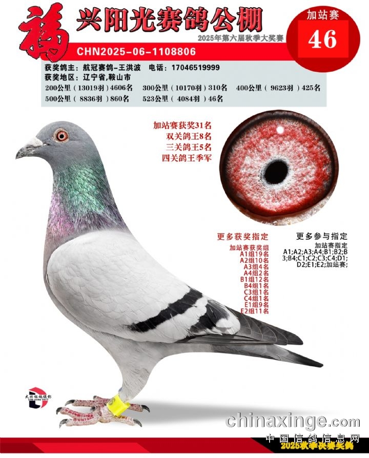 辽宁福兴阳光公棚加站赛91名-135名获奖鸽照片