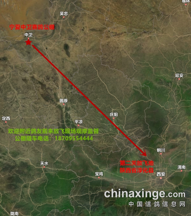 宁夏中卫赛鸽公棚380-430公里第二关比赛暂定于11月7日集鸽,8日在陕西省淳化县开笼。如遇天气缘故,比赛时间顺延,具体时间另行通知。