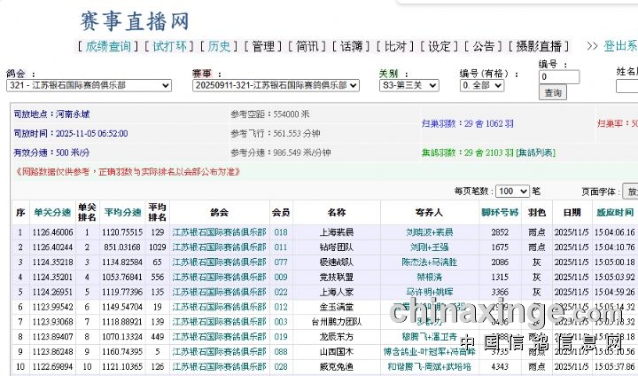 2025年“银石杯”多关鸽王大奖赛第三关中距离赛于11月05日早上06:52在河南永城开笼放飞。