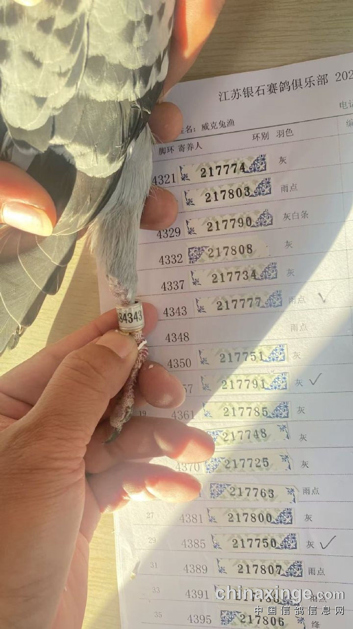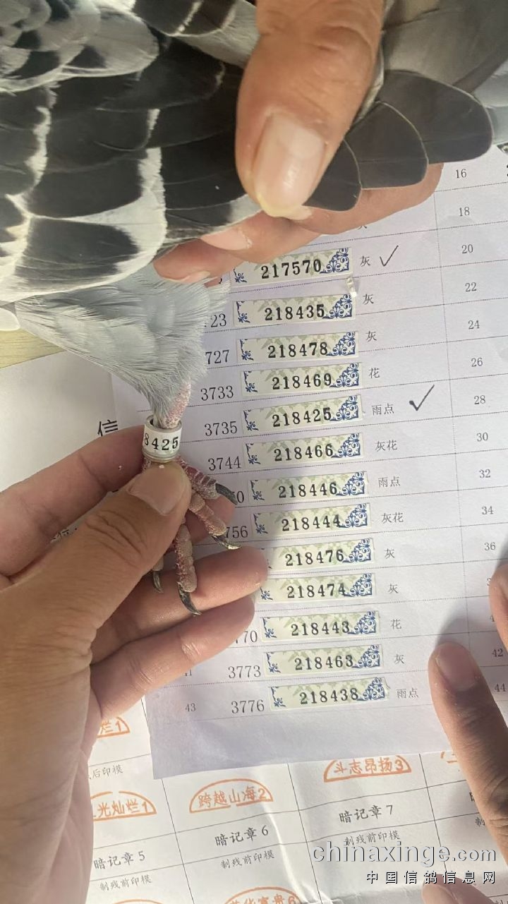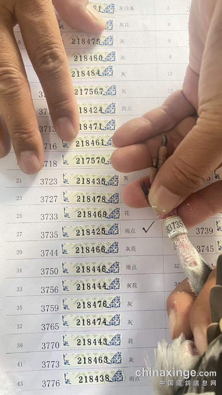 寄养人 博含鸽业-叶冠军+冯高峰 足环号 3735