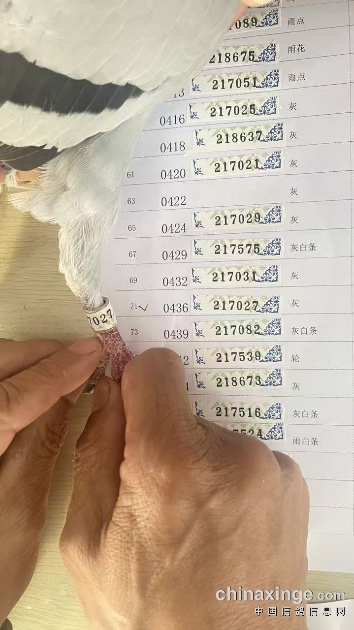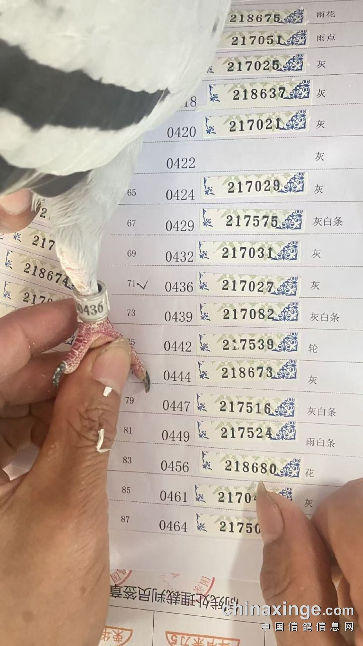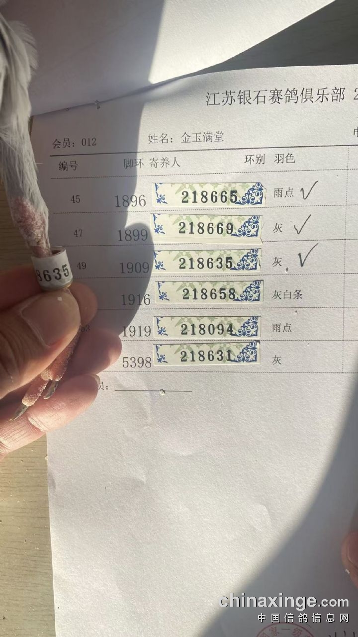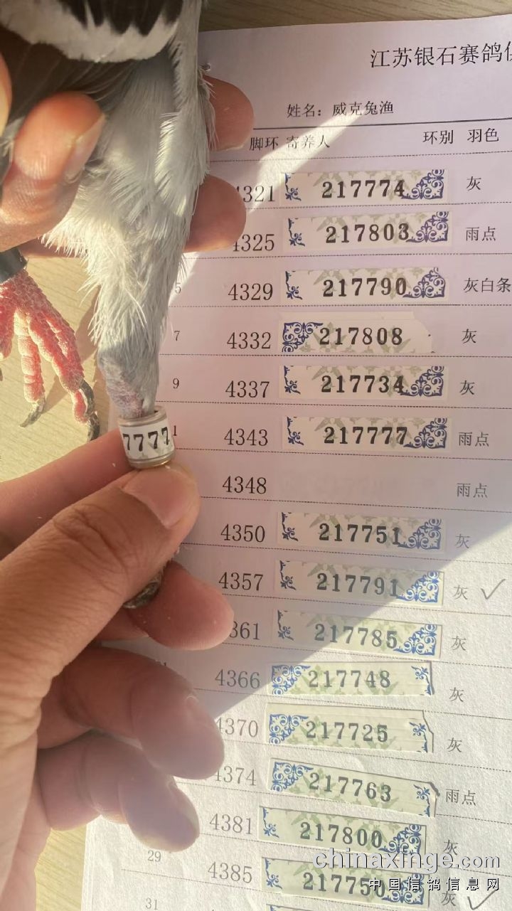 寄养人 博含鸽业-叶冠军+冯高峰 足环号 3735