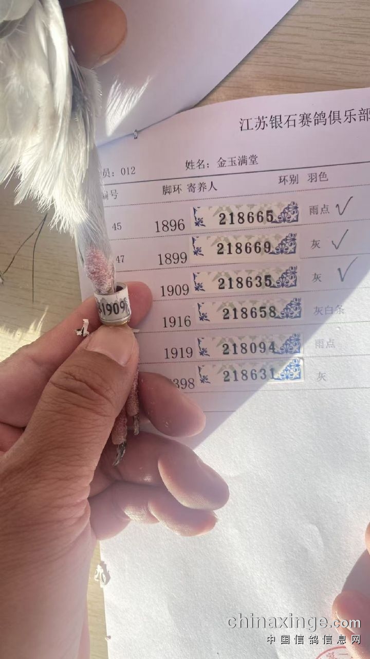 寄养人 西蜀赛鸽叶鹏+王强 足环号 1909