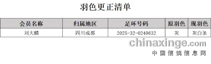 2025年天南铜都(大秋棚)羽色更正清单