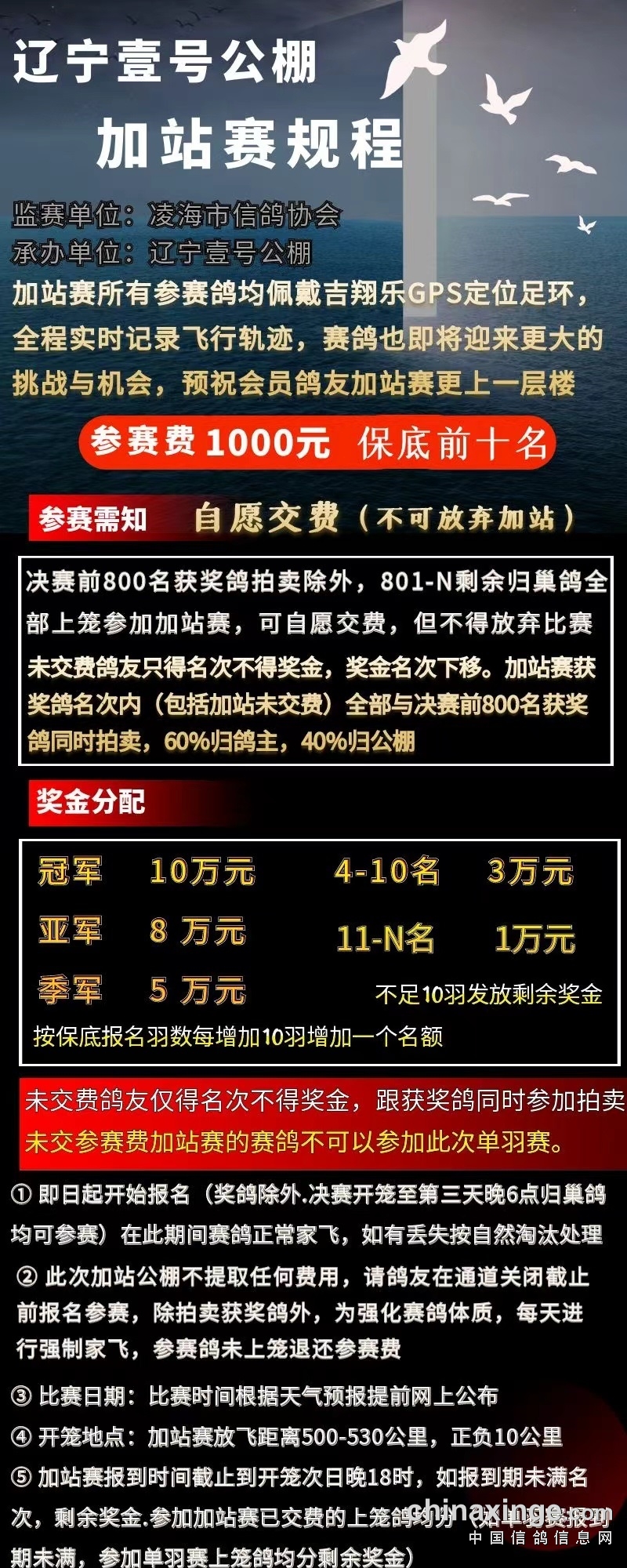 辽宁壹号公棚第三关530公里双关、三关鸽王前10名获奖名单