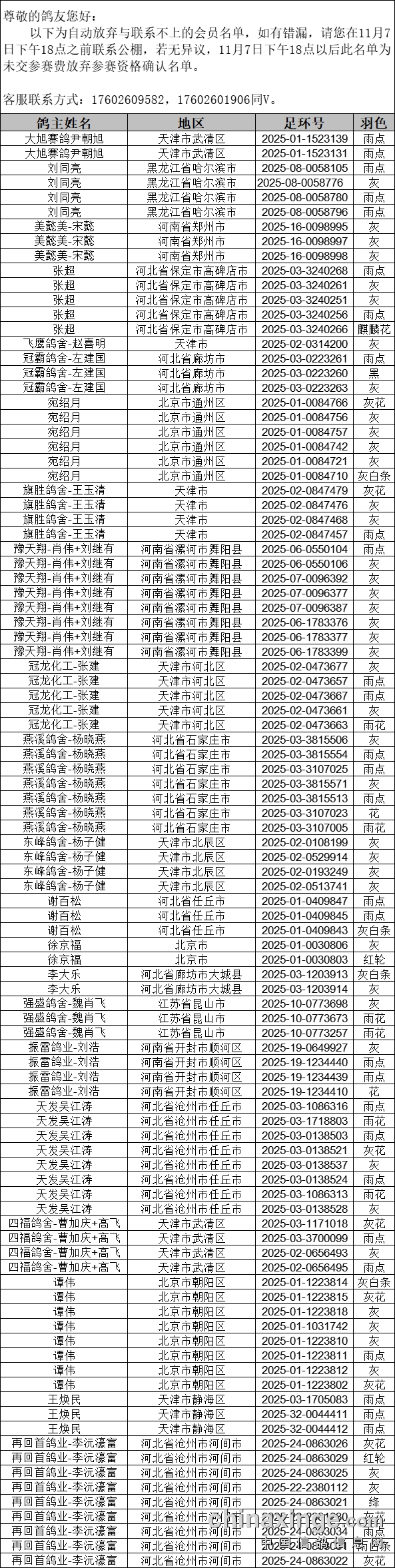 提示:如果此页面是训放清单,要想快速查询鸽环号,请按