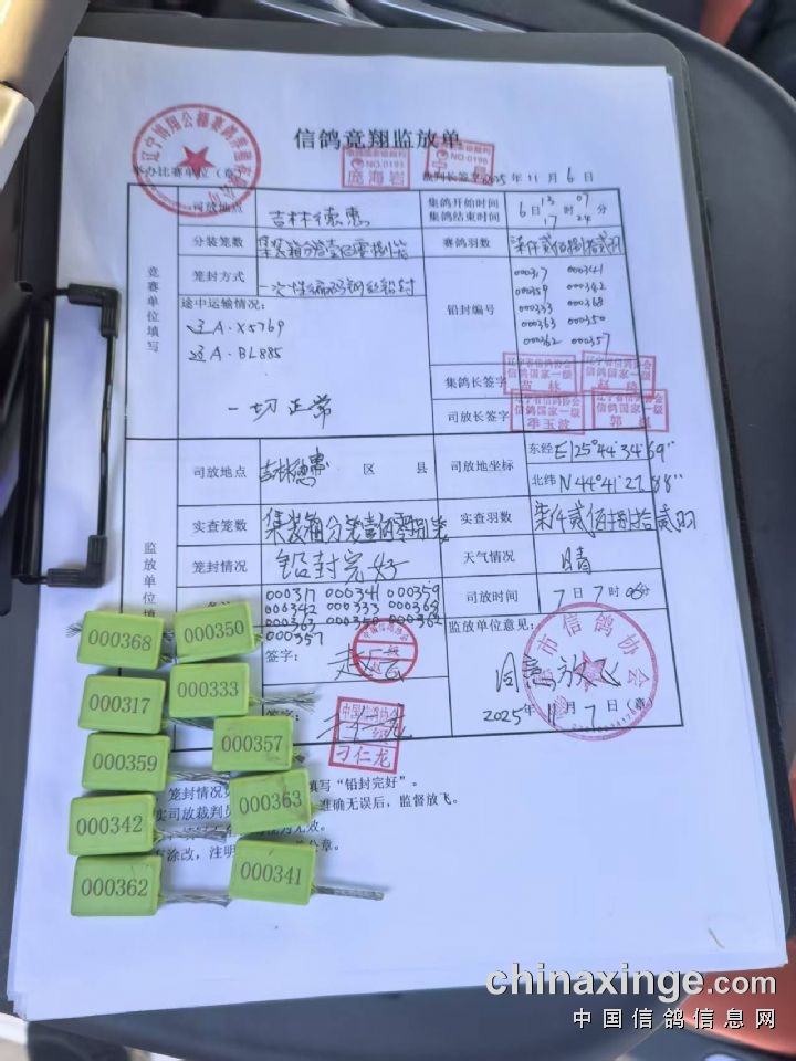 辽宁博翔赛鸽公棚400公里预赛上笼清单
