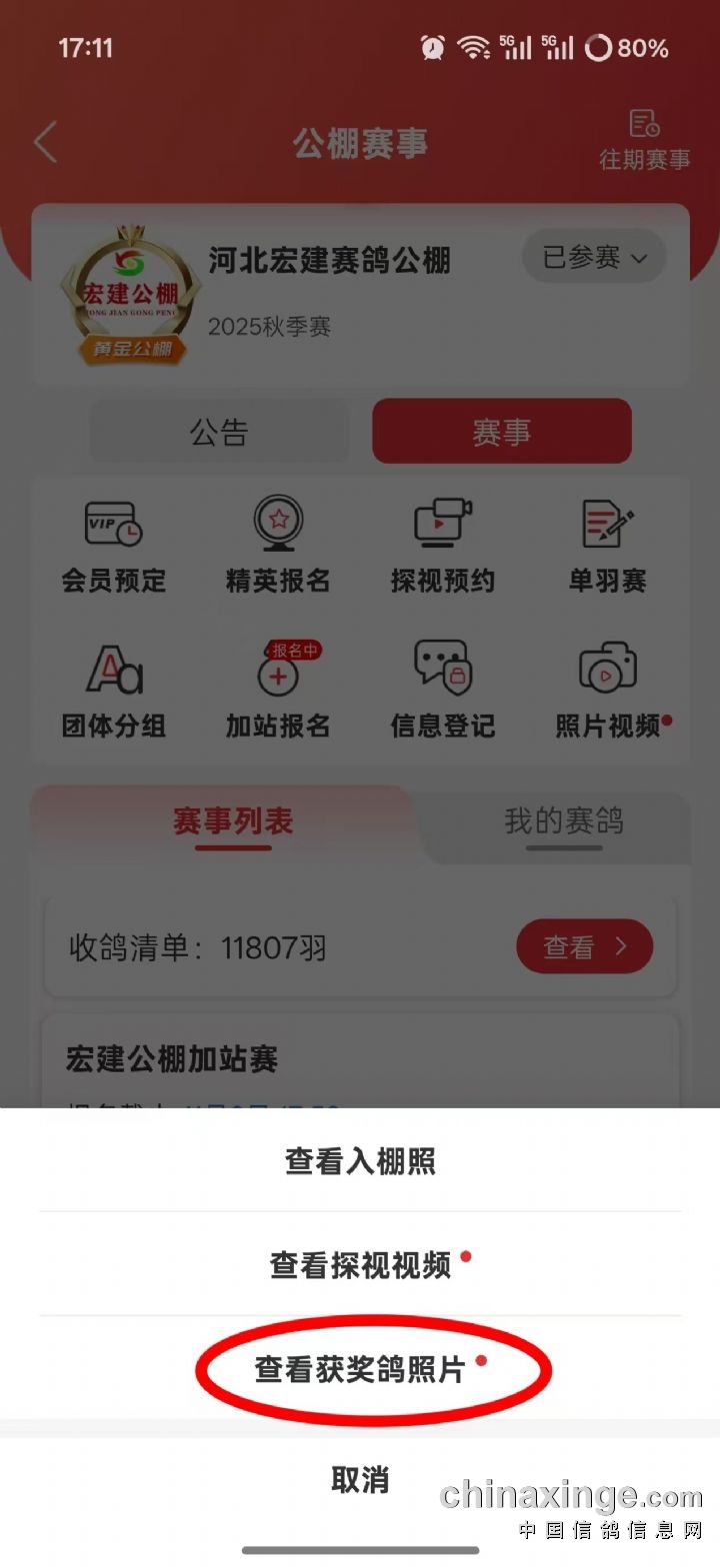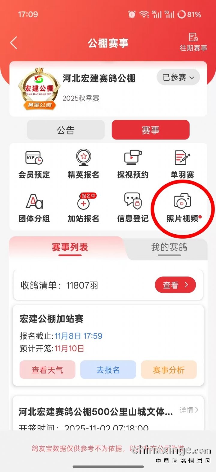 或者登录“D-P-S”APP搜索“河北宏建赛鸽公棚”点击“