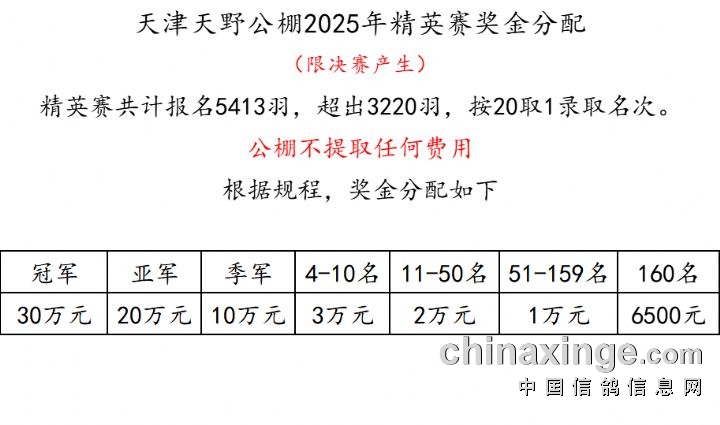 天津天野公棚2025年精英赛奖金分配