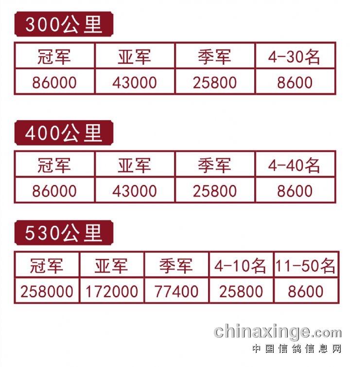内蒙古金翔秋棚200、300、400、530、550公里综合排名(仅供参考)