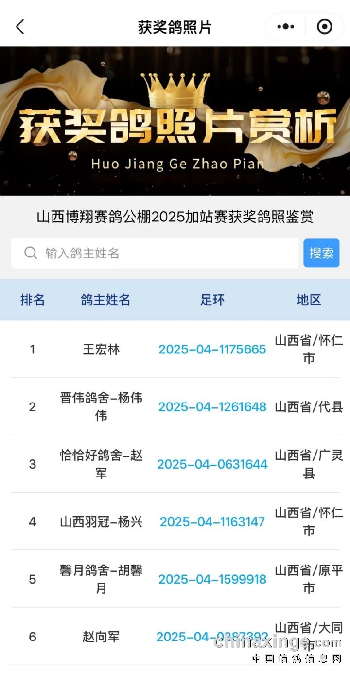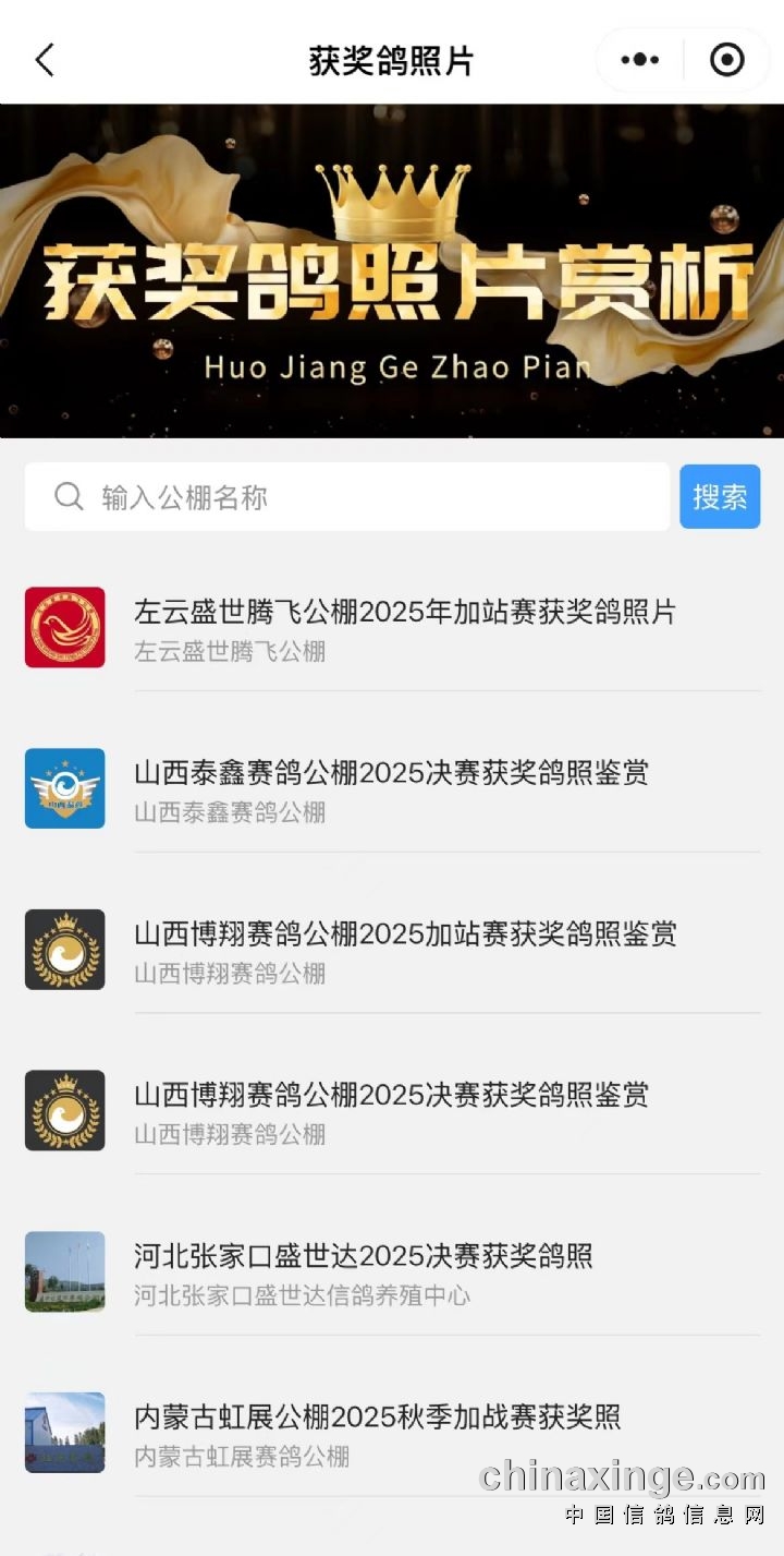 关于2025年决赛和加站赛获奖鸽照片的查询方法