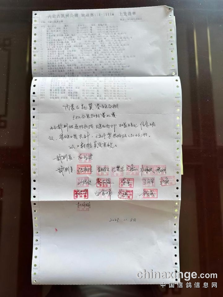 内蒙古凯翼公棚加站赛(580公里)集鸽上笼清单